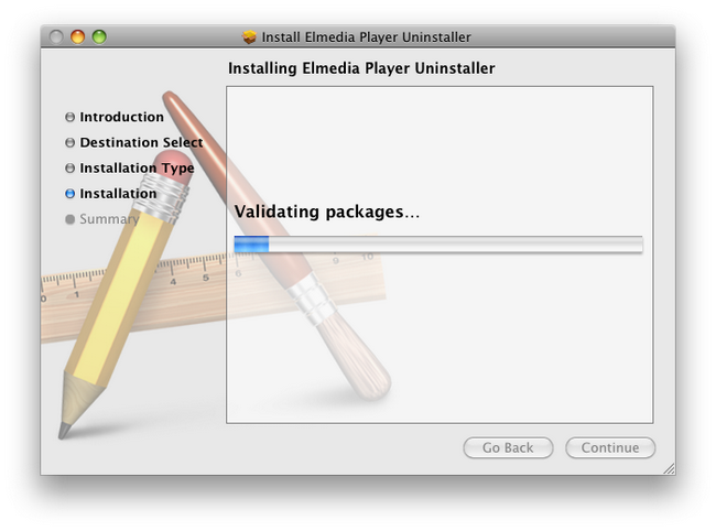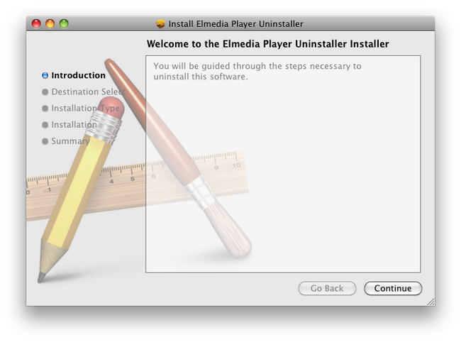 http://www.eltima.com/download/elmedia_player_uninstaller.zip - Go through the installation process of the Uninstaller. Click “Continue” button in the invoked window: