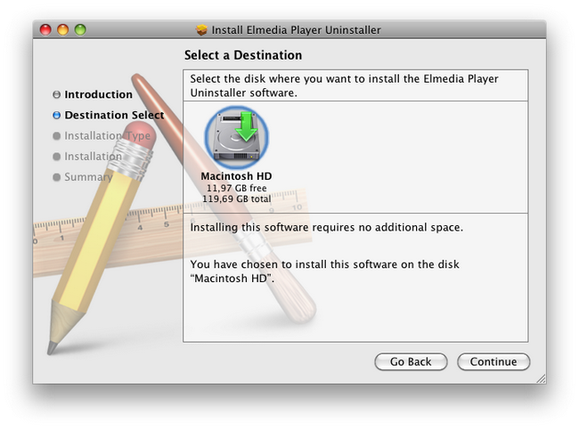 - Select the destination path for Elmedia Player Uninstaller, then click “Continue” button: